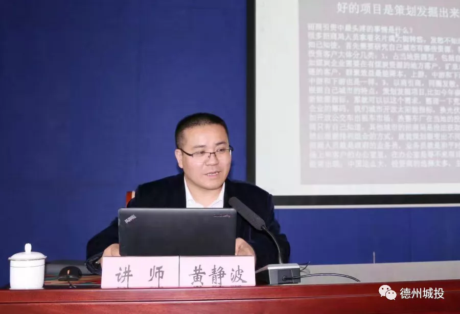 此次培训会,黄静波主任以《招商引资实战经验分享》为主题,从宏观理论、基本常识、实战经验、案例分析四个方面入手,深刻分析了当前国内经济形势,剖析了德州市招商引资所能利用的资源优势,指出在进入新的发展阶段、贯彻新的发展理念的大背景下,招商引资工作所面临的新挑战和新机遇;并根据自身对招商引资工作的感悟,传授了招引重大项目的成功经验,提出“好的项目是策划发掘出来的,不是等来的”、“招商工作经验不是纯靠书本上学来的,而是在实际工作中感悟来的”,对集团今后如何进行招商引资工作的摸排线索、对接项目、项目跟踪提供了有益借鉴。