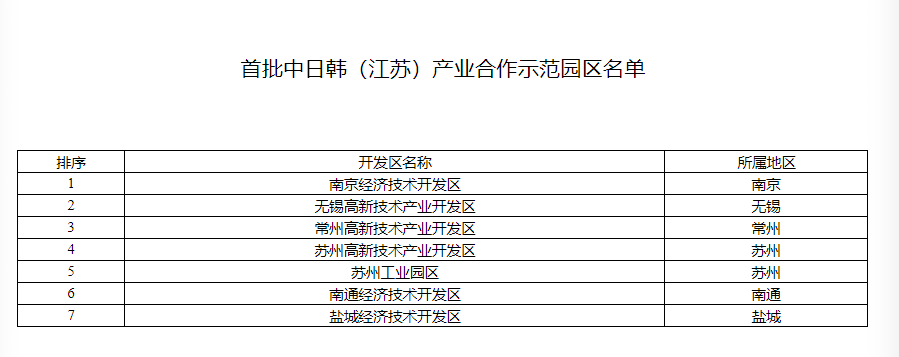 除了上述几家开发区外,记者在采访中发现首批认定的中日韩(江苏)产业合作示范园区,都是对日本、韩国有良好合作基础的。