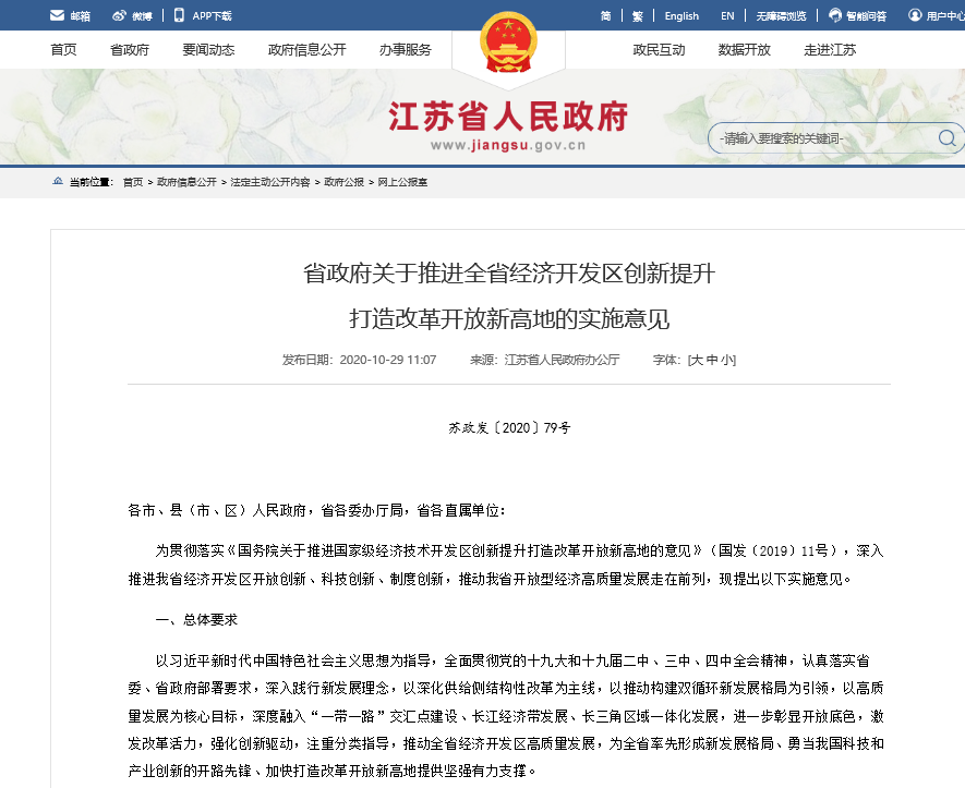 去年10月,江苏出台《关于推进全省经济开发区创新提升打造改革开放新高地的实施意见》(以下简称《实施意见》),无论是对于经济开发区自身改革创新发展,还是对于更好地服务江苏省经济社会发展大局,都具有十分重要的意义。